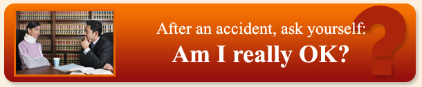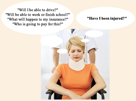 Most people have one thing on their mind: their mobility! They worry: "Will I be able to drive?" "Will be able to work or finish school?" "What will happen to my insurance?" "Who is going to pay for this?" The last thing on their minds is: "Have I been damaged?" Our concern is to give you the care you need, if you need it. If we cannot help you, we will refer you to a specialist who can. Second, remember, once you settle your case, you may lose the right to have the insurance company pay for treatment if you need it. A good rule of thumb is to be informed of your legal rights and health care options, then make a decision. |